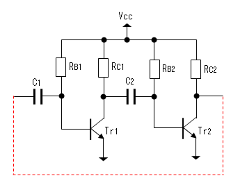 Vcc → RB1 → C1 → Tr2のコレクタ