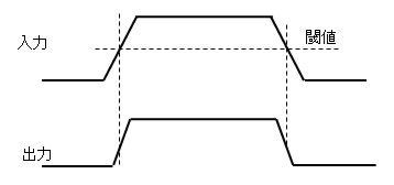 遷移する信号(二値信号)を扱う場合、出力のレベルが反転する入力レベルが特定の閾値ではなく