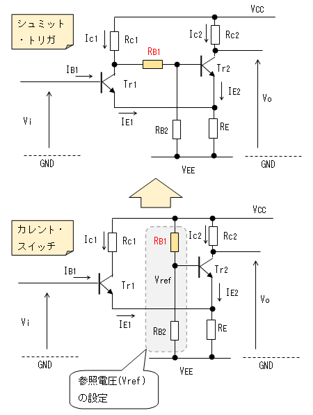 カレント・スイッチの場合、トランジスタTr2の参照電圧(Vref)