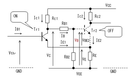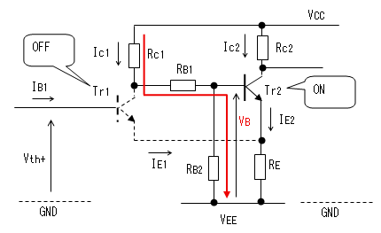なお、このときTr2のベース電圧(VB)はVth+です。
