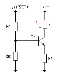 負荷を流れる電流(IL)はトランジスタのコレクタ電流(IC)そのものですが