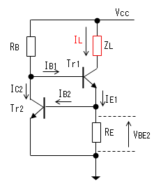 そして電流増幅率(hFE)が大きければ、IL ≒ IE1 が成り立ちます。