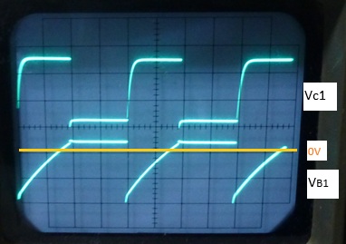 交互にON/OFFを繰返し、発振している。立上がりは遅い。