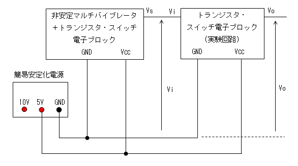 追加したトランジスタ・スイッチを経由して実験回路に供給します。