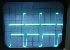 ところで、非安定マルチバイブレータの出力を直接使うと立上がりの時間が遅く